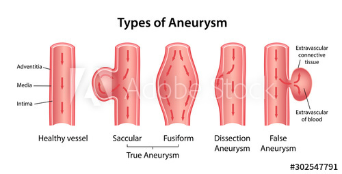 <p>Collection of blood between muscularis and adventitia layers of the artery</p>