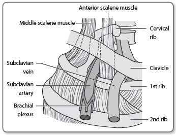 What are the symptoms of thoracic outlet syndrome most commonly due to?