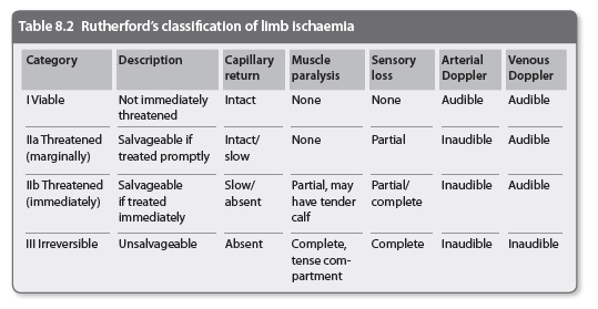 What classification system can be used to grade arterial ischaemia?