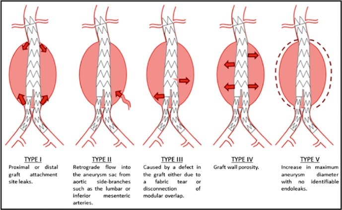 Describe the 5 types of endoleak