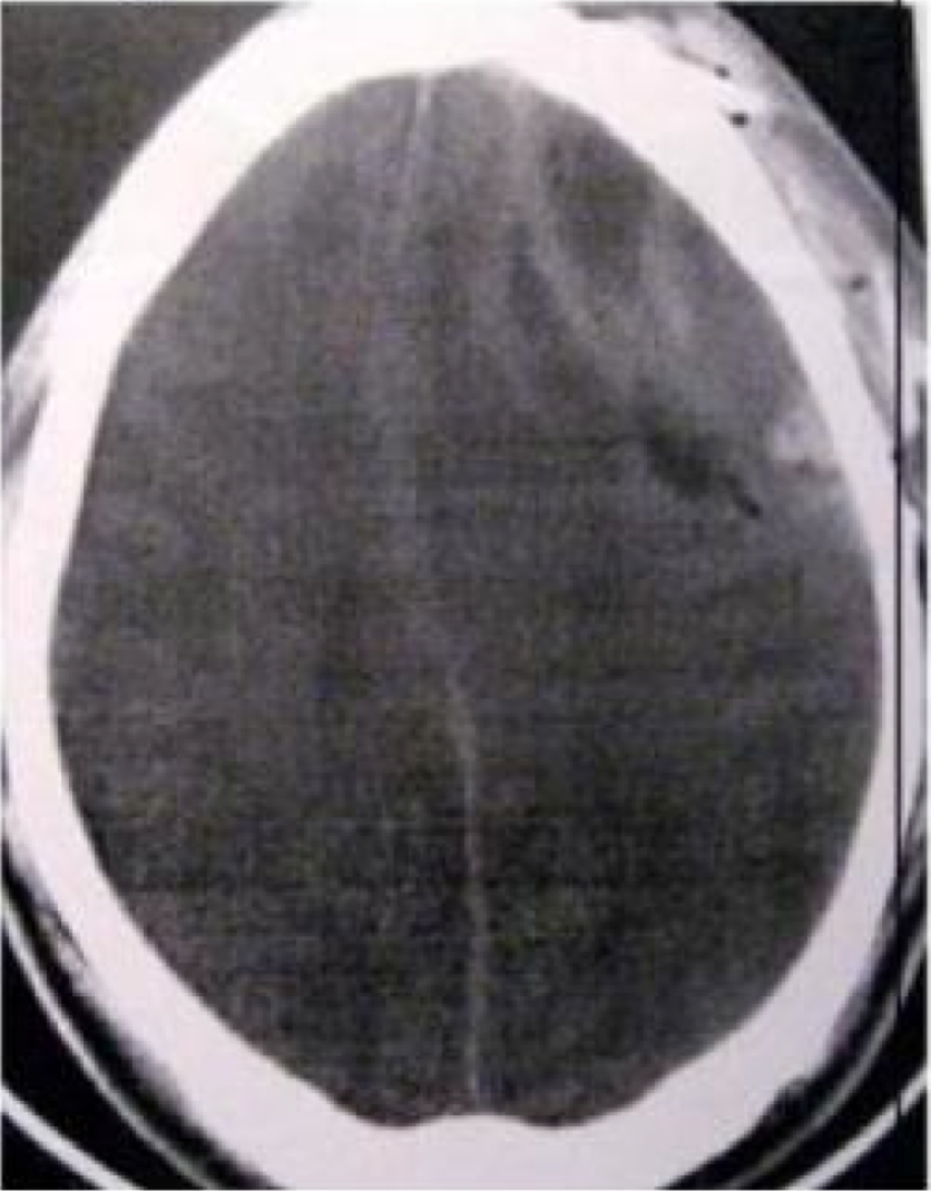 Temuan yang ditunjukkan pada CT Scan di bawah ini paling mungkin terjadi