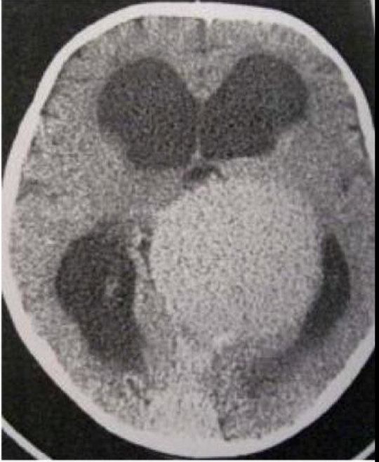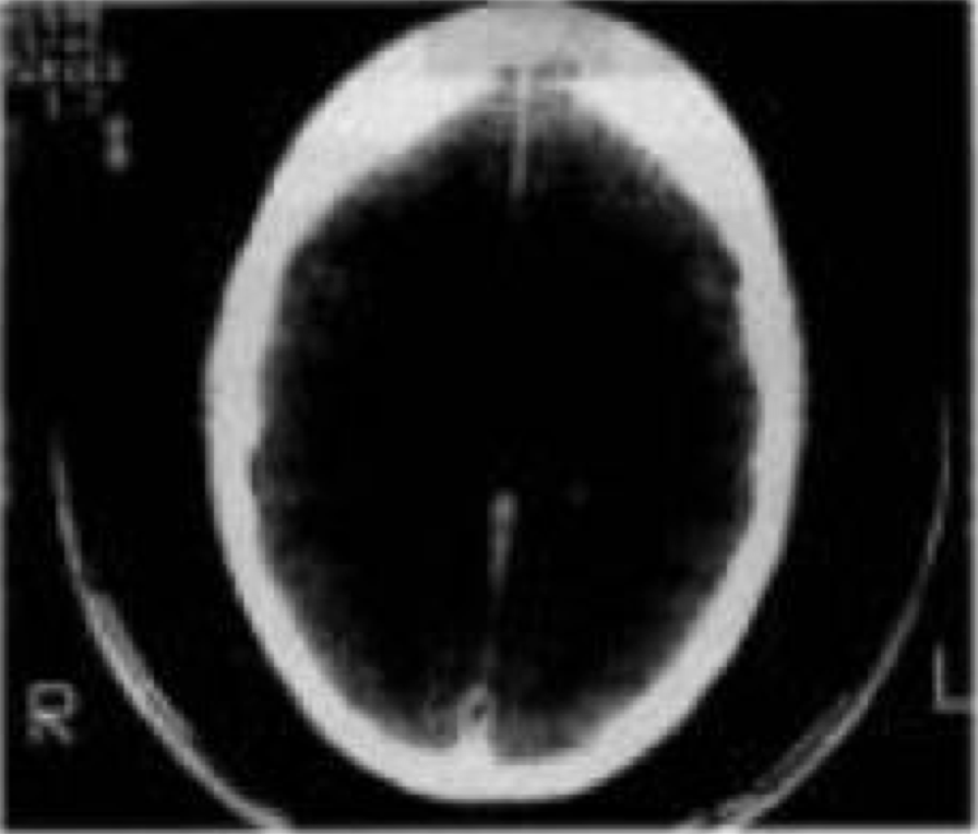 Bayi, 4 bulan dibawa dengan makrosepali. CT Scan Axial tidak enhance di bawah ini menunjukkan kelainan apa