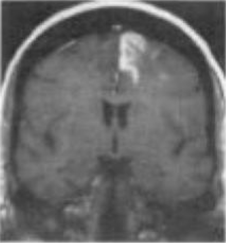 Kelainan manakah yang ditunjukkan oleh MRIT-1 terimbang non kontras di bawah ini?