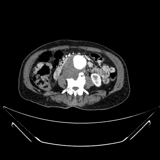 Interpretation: Findings are consistent with mycotic aneurysm of the abdominal aorta with adjacent abscesses and left renal embolic infarct.