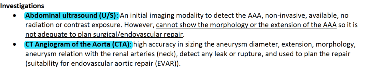 Investigations for AAA?