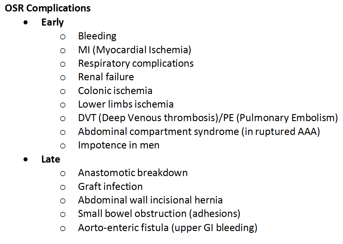 Method/Complications of OSR of AAA?