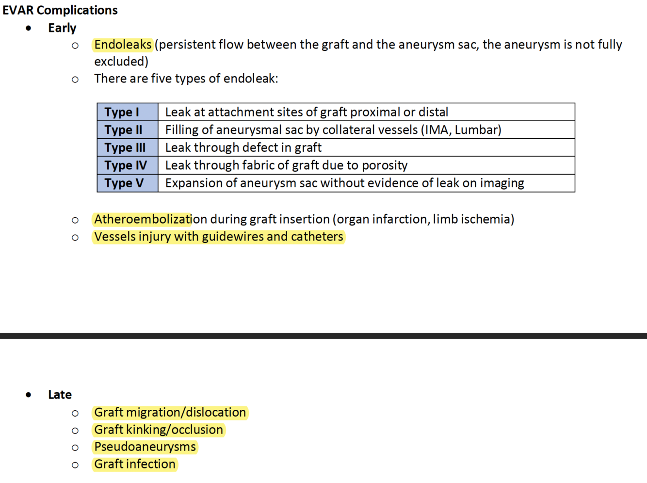 Method/Complications of EVAR of AAA?