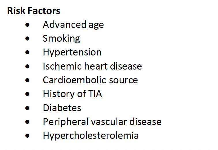 ~ 80% of ischaemic strokes affect the carotid territory the main cause of which is thromboembolism of the internal carotid artery (ICA)