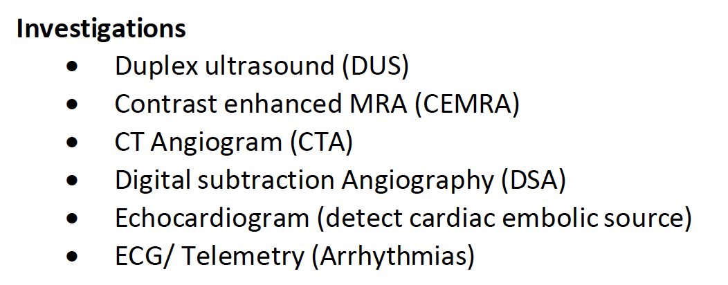 Investigations for Stroke?