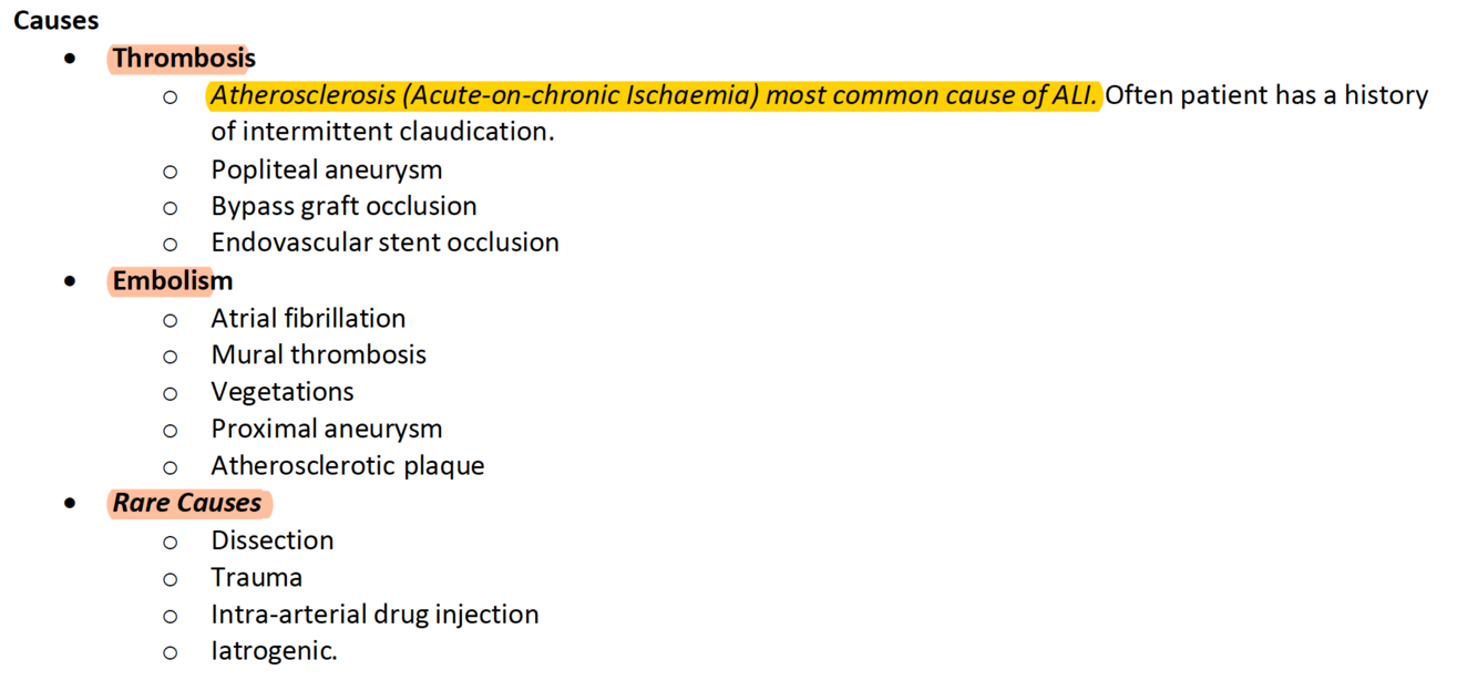 Causes of Acute Lower Limb Ischemis