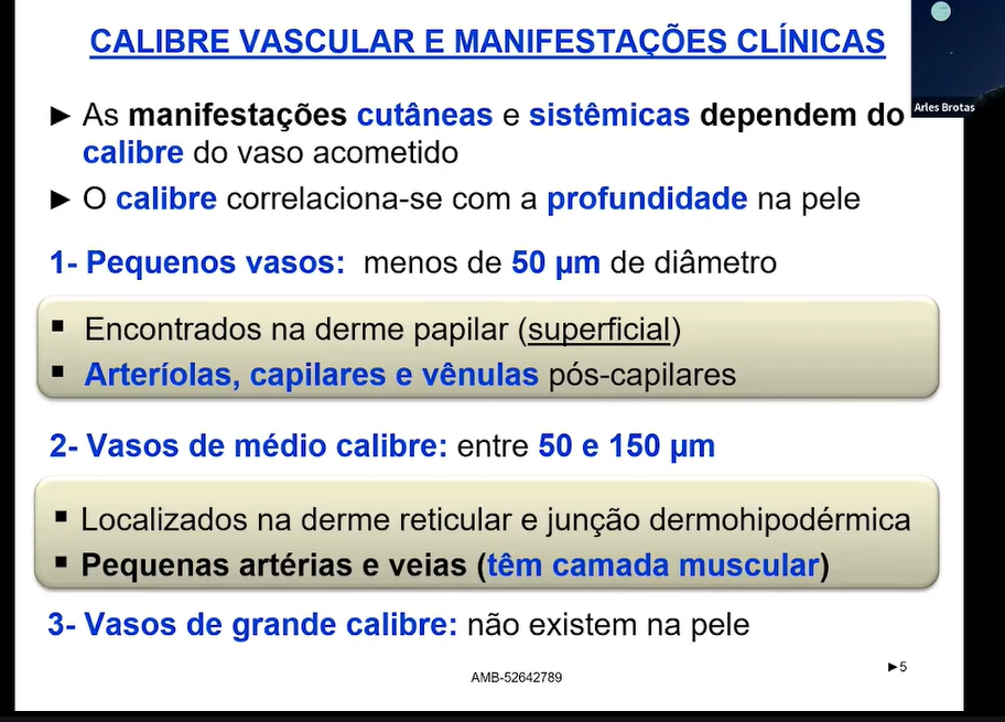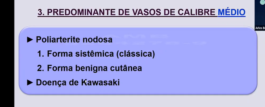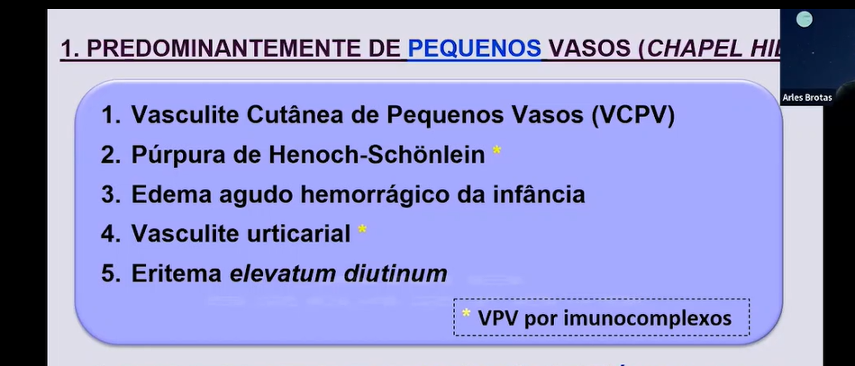 Características das vasculites quanto ao calibre dos vasos