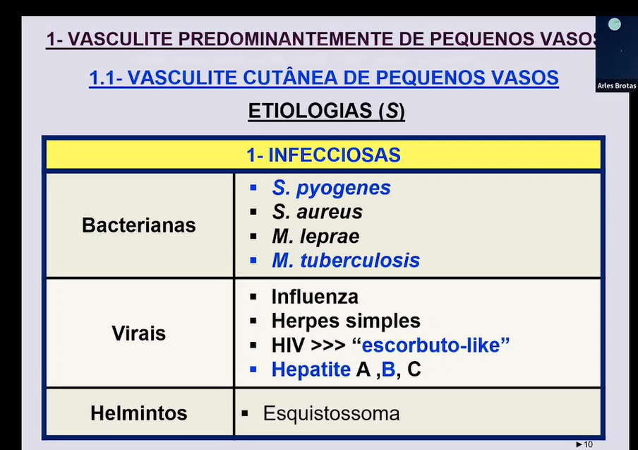 Sobre as vasculites de pequenos vasos predominantemente quais são as etiologias?