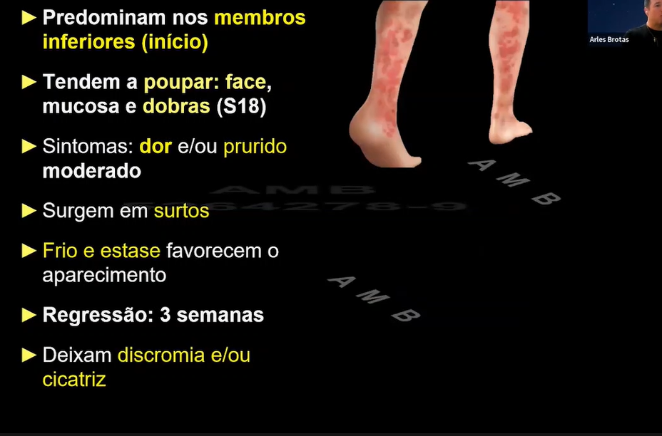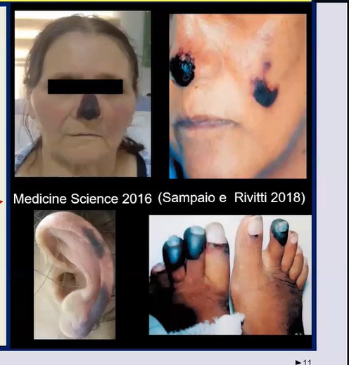 Lesões em membros inferiores- poupa tronco. Acometimento de orelha e extremidades.