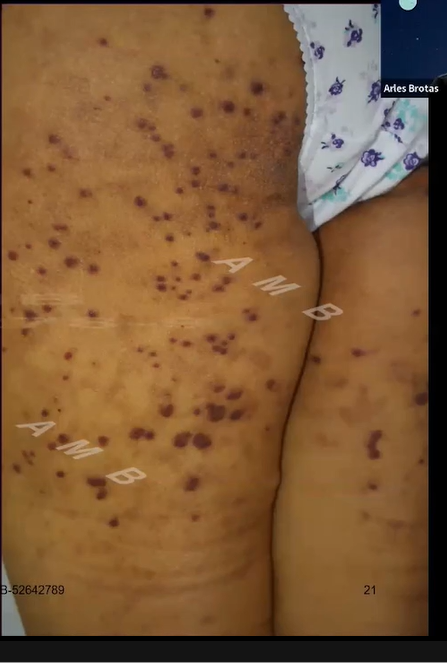 Depósito também ocorre em áreas de pele sã