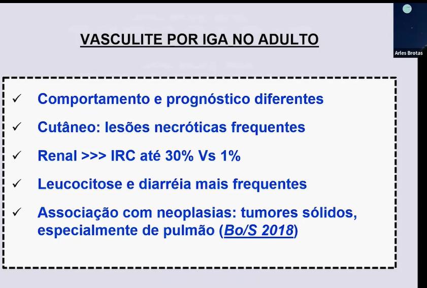 Qual prognóstico da vasculite por IgA no adulto?