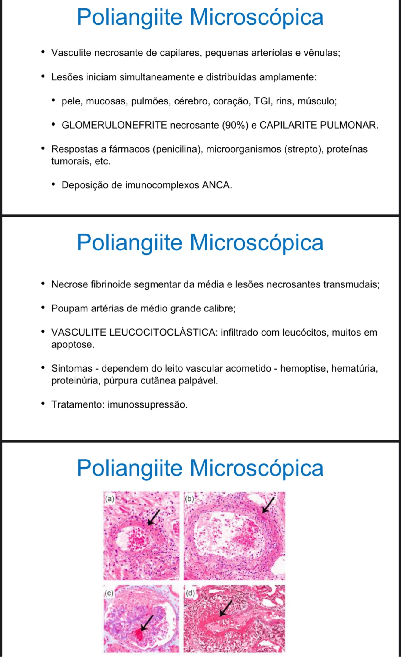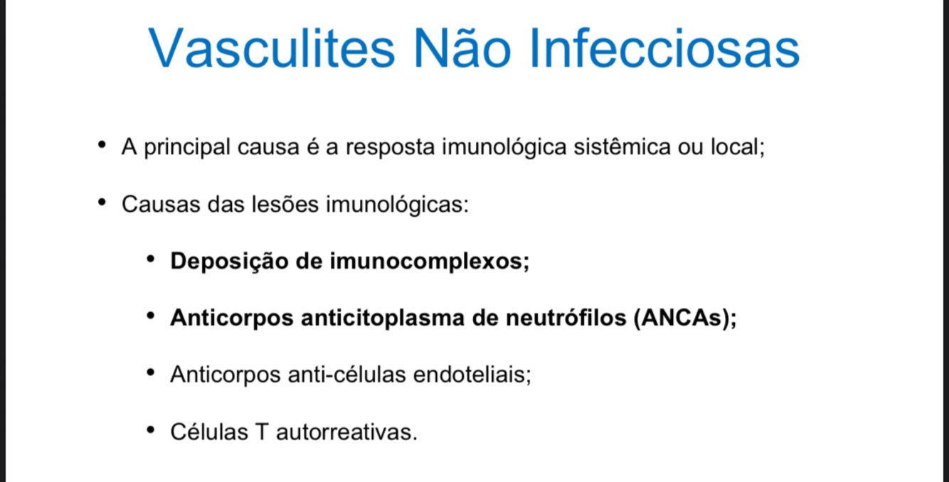 Vasculites não infecciosas mais características