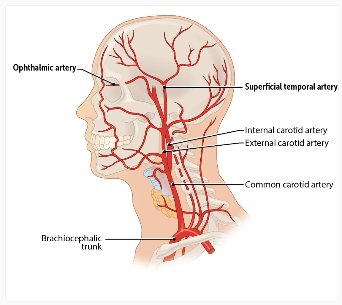 GCA commonly affects _ arteries; it may also involve the vertebral and opthalamic arteries and cause blindness