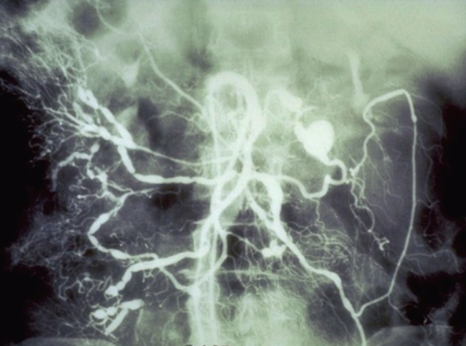 biopsy in polyarteritis nodosa - shows inflammed vessel and aneurysm