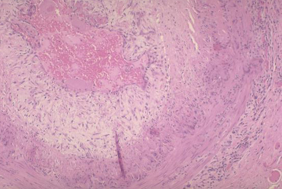 This disease may cause visual loss, jaw claudication (pain due to ischemia) and scalp tenderness - histo looks like this: