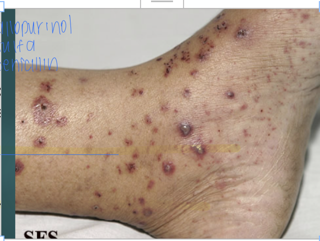 allopurinol, sulfa-drugs, penicillin and anti-convulsants.