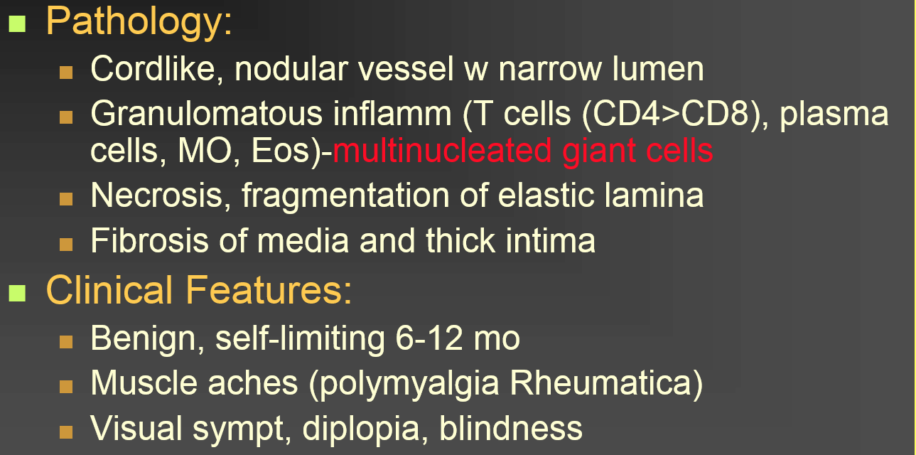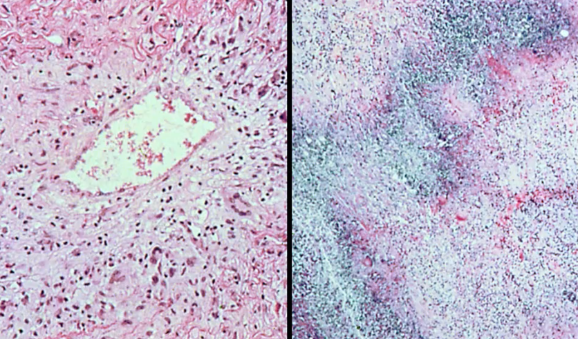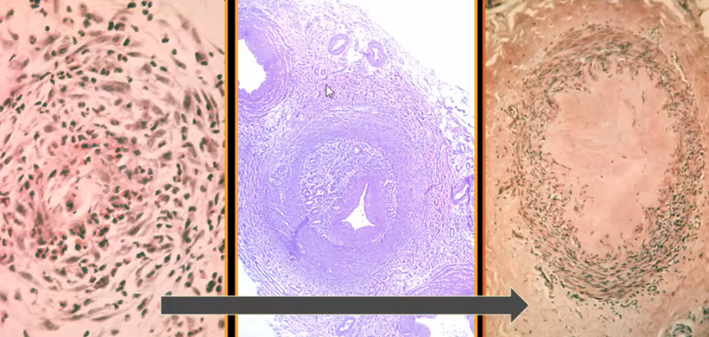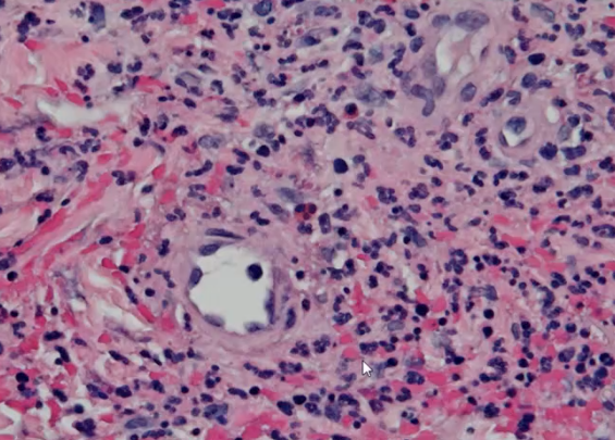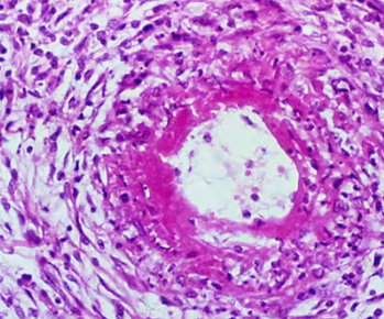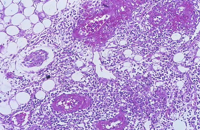 There is narrowing of the vessel wall by acute inflammation which can lead to thrombosis and infarcts. It can causes gangerenes to develop in the periphery and it is also associated with Raynaud’s phenomena