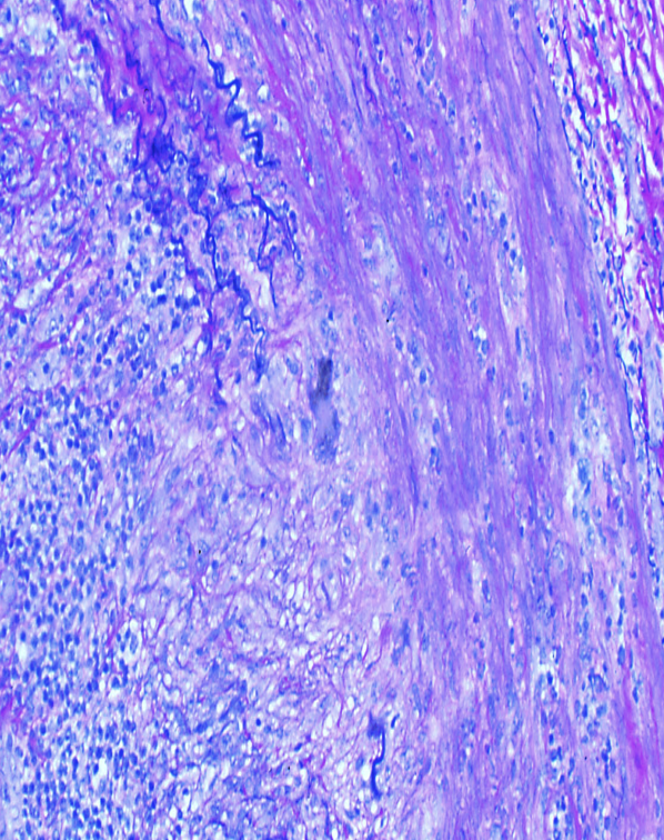 Strong evidence of fibrinoid necrosis, polyarteritis nodosa