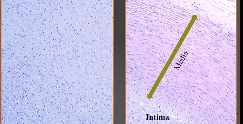 Tunica media is completely normal whereas the intima is markedly thick, this is takayasu arteritis