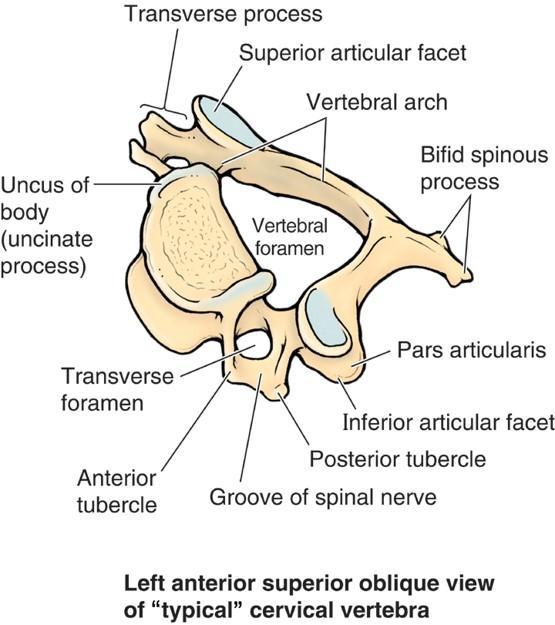 The cervical vertebrae transverse processes have anterior and posterior tubercles serving as a site of muscle attachment with a groove for the spinal nerve running between them