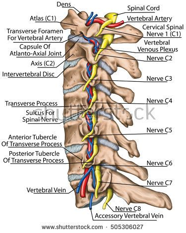 The vertebral artery, vein and sympathetic plexus run through the transverse foramen Apart from at C7 where only the vertebral vein and sympathetic plexus run through