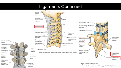 Ligaments of the vertebral column Discuss the supraspinous, interspinous and intertransverse ligaments