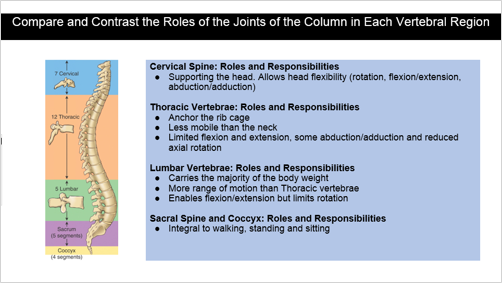 The amount of motion occurring is due to the size of the adjacent vertebral discs and the direction of the motion occurring is due to the orientation of the articular facets