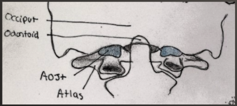 ligaments = nuchal ligament, alar ligament, lateral atrlantooccipital ligament