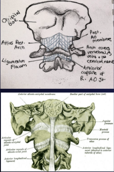 upper border = atlantooccipital membrane for attachment with occipital boen above