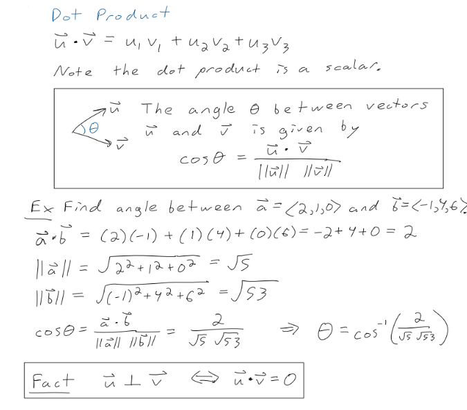 The dot product represents the product of the magnitudes of two vectors and the cosine of the angle between them.