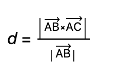 Give the equation for the smallest difference between a point C and a line that passes through A and B