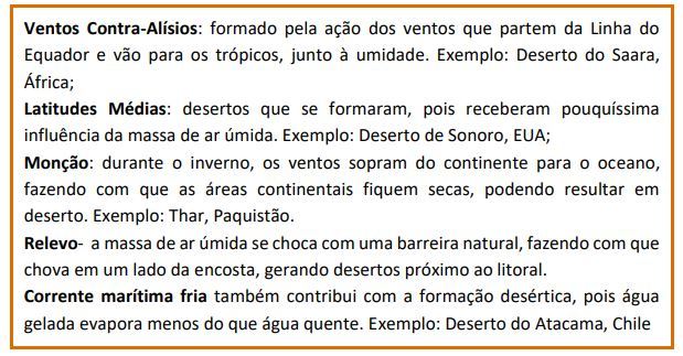 Ocupando cerca de 1/3 da superfície terrestre, esse bioma pode ser subdividido em três realidades (quentes e semidesertos quentes, desertos e semidesertos frios e os desertos polares).