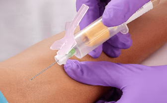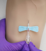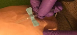 Insert at 10-30 degrees into vein whilst stabilising vein