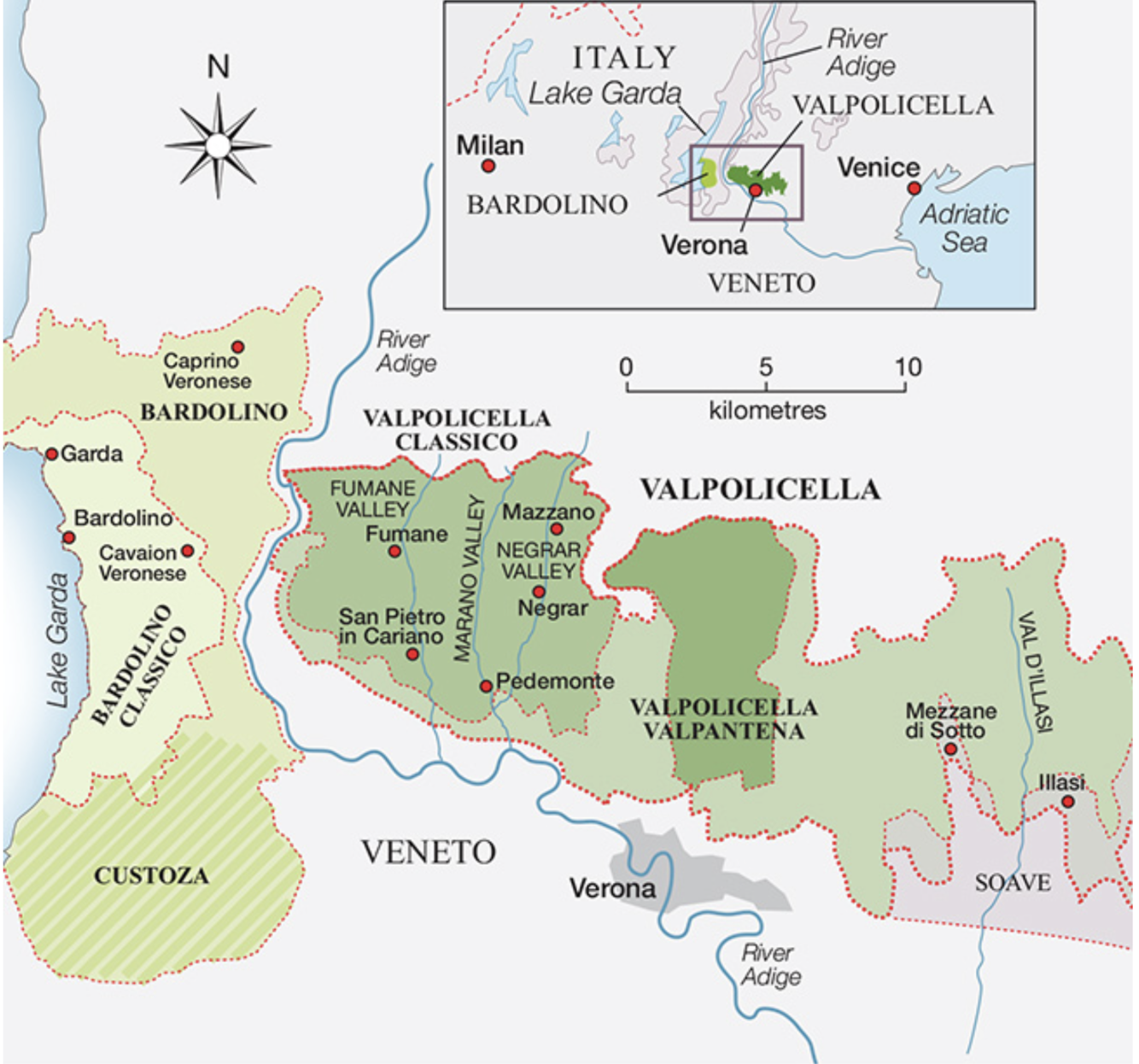 This zone lies between Valpolicella Classico and Eastern Shore of Lake Garda. Lighter and more Neutral than Valpolicella