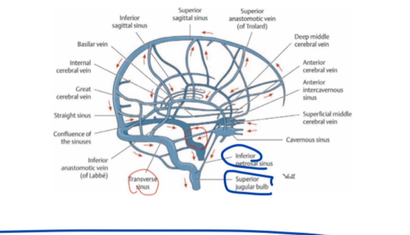 Inferior petrousal ➡️ IJV ➡️ sigmoid