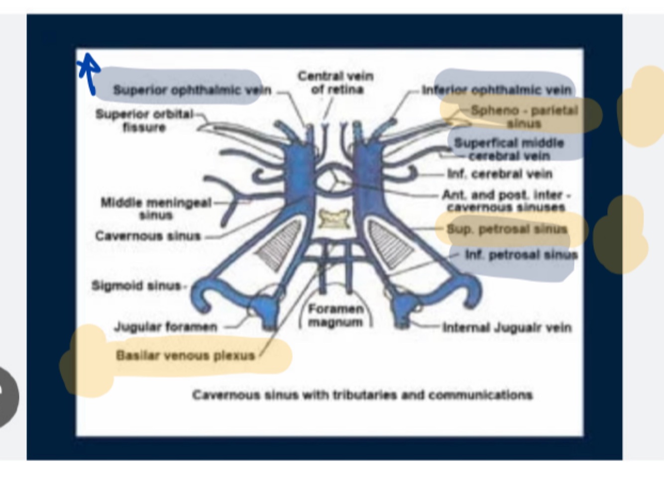 Superior petrosal sinus Terminates ➡️ at sigmoid sinus within 1 cm of the junction of the sigmoid ➡️transverse sinuses( R > L)