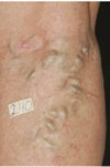 Chronic thrombophlebitis w synechia, too superficial/extrafascial vein, acute superificial venous thrombosis, very tortuous, aneurysmal > 2.5 cm GSV