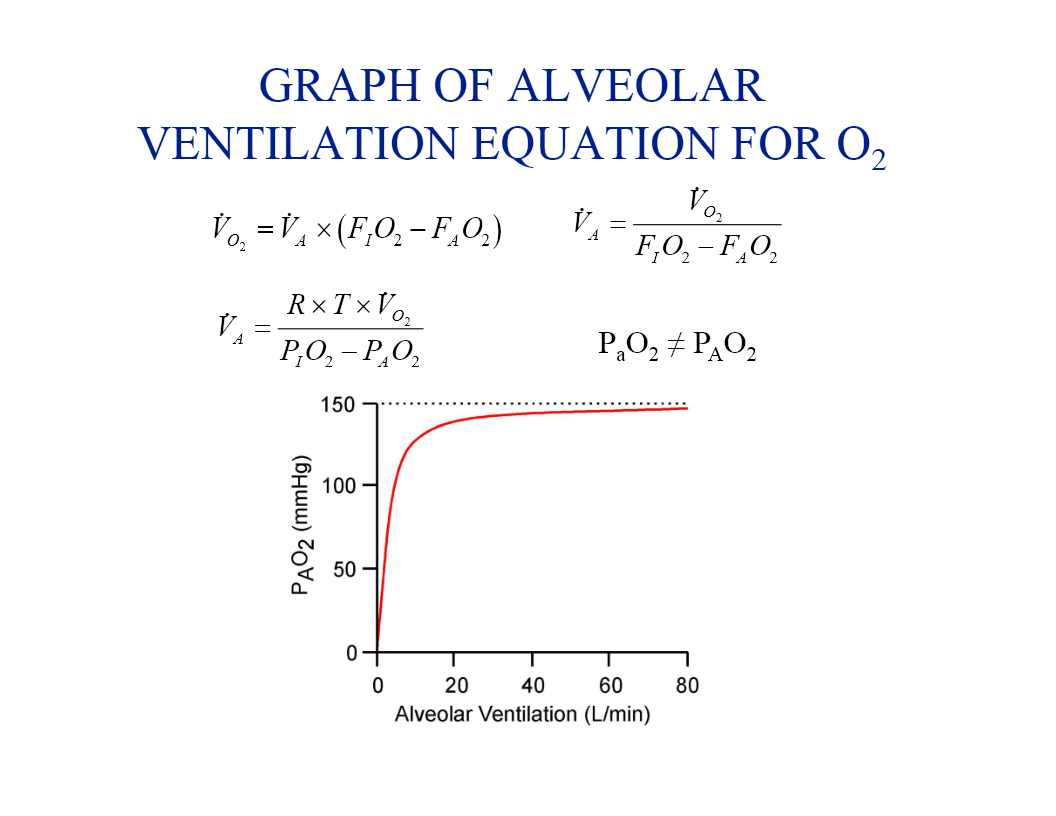 alveolar PO2 hyperbolically increases, asymptotically approaching the inspired PO2