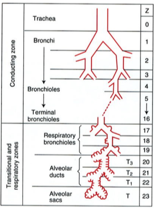 Describe the conducting and non-conducting zones of the respiratory tree.