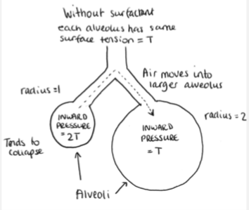 What would happen if two alveoli of unequal size were connected by an airway?