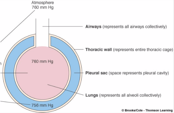 Transmural pressure gradient across the thoracic wall = atmospheric pressure minus intrapleural pressure.