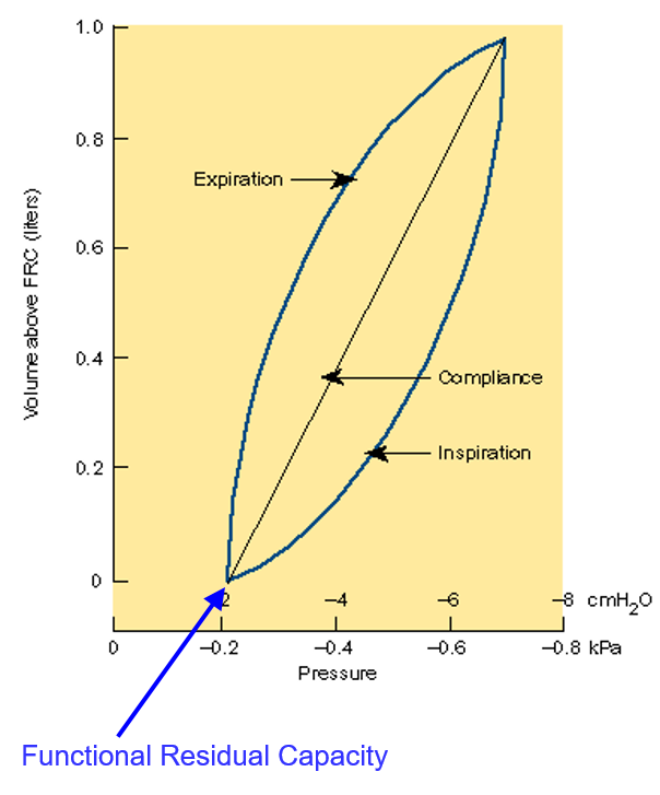 Does it require a greater change in pressure from fictional residual capacity to reach a lung volume during inspiration or expiration?