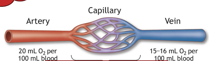 * During intensive aerobic exercise, increases to approximately 15 to 20 mL/100 mL blood (i.e. 75%-100%)