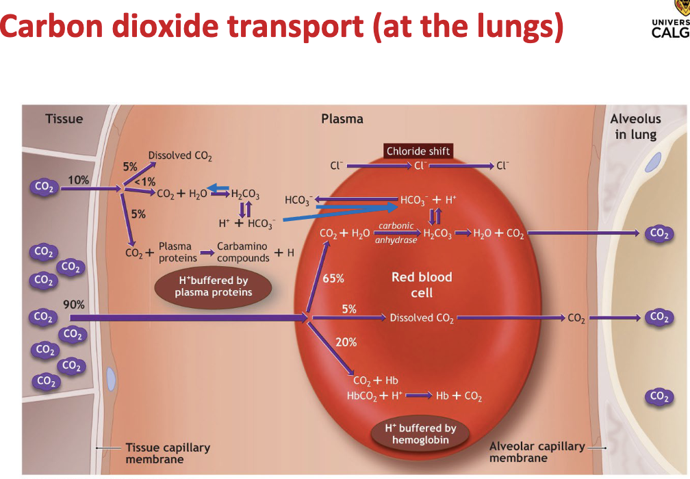 the 20% Hb in the RBC, goes back to Hb and CO2