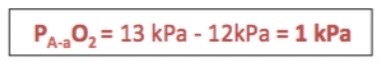 NB: A-a difference ↑ gradually with age (as the V/Q ratio changes). The difference is around 2.3 kPa at 60 years (Calculated: Age/30 + 0.3 kPa)