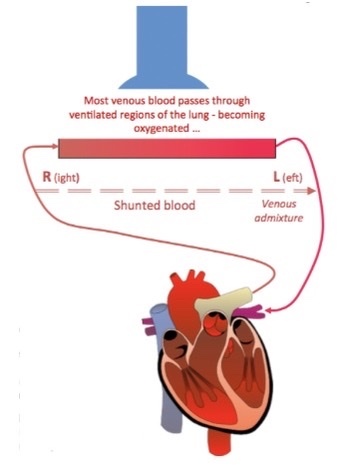 However, some venous blood does not and is R-L ‘shunted’ 🡪 ‘wasted perfusion’